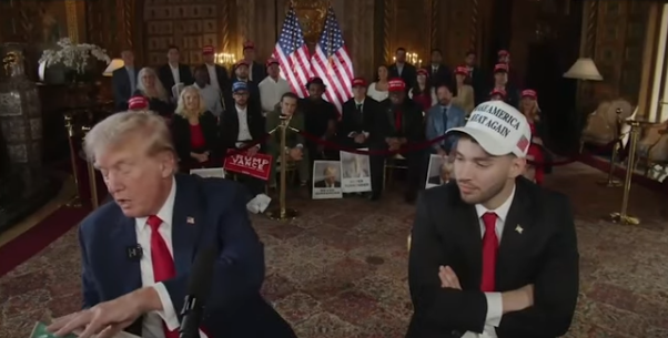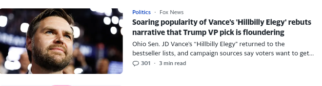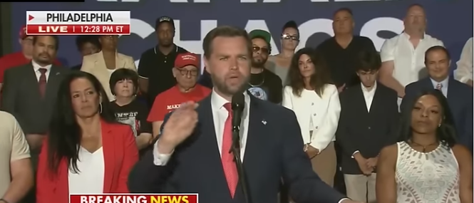 Trump is plucking his way into weird Internet streamers — accidentally a 23 year old kid whose trademark is that he smells the chairs of the peoples he interviews after they leave. Also he apparently can’t define fascism — to be sure I can’t give a straight forward definition either — and has trouble reading it off the Internet and has never heard of Mussolini. Trump is evidently making an appearance in Montana — big Senate seat available, I guess he may be thinking down-ticket and figure his niche targeting will lift him up in the swing states? JD Vance — not too much to say on this — the friendly network has dropped the image out lest the only visible word you get is “Kamala” — and looking over the tens of people in this crowd — I do highlight the woman, third from the right, too row, floof of hair, looks a week away from dying her hair green, looks like she should own a number of cats.