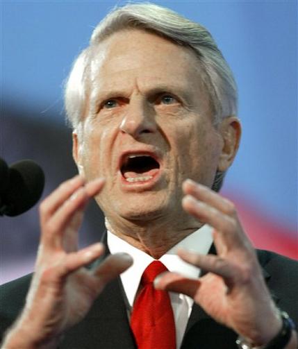 Now, let’s listen to this voice on Chris Matthew’s show (past the roundtable composed of a batch of Republicans). Zell Miller seems to not understand the idea that Democrats offering “spitballs in combat” is the same cartoonish version of reality as Republicans “starving the kids”, and thus… challenges Chris Matthews to a duel.