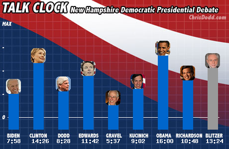 What came out of the debate yesterday? Well, Mike Gravel said some things about the hidden price of gas that I sort of internalized back in high school which I used to get a couple of my teachers to roll their eyes in current event discussions on rising gas prices, back when the price of gas was rolling all the way up to a buck and a half a gallon.(*) Ergo, on that basis alone, Mike Gravel won the debate. With all of those five and a half minutes he received to speak.