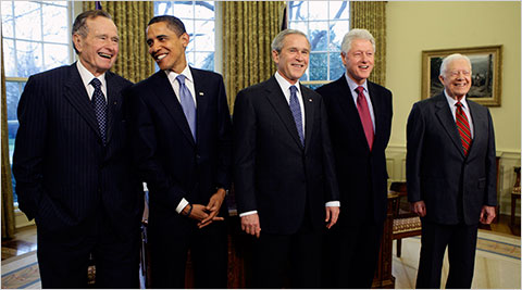 I suspect this has to do with Carter’s stand on the Israeli invasion of Gaza. What i don’t like about the image is how Obama seems to be cozy among the Bushes. I figured Obama to be more of a Clinton or Carter man.