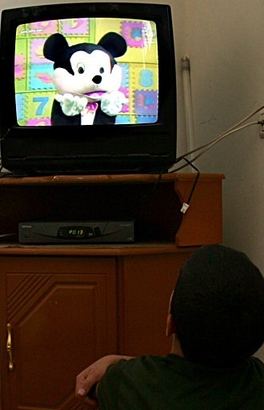 All good and well — the dangers of television on the health of children.  But I have to wonder about the photograph, which exposes another problem with television not covered in the article.