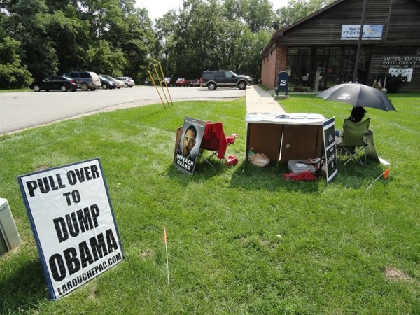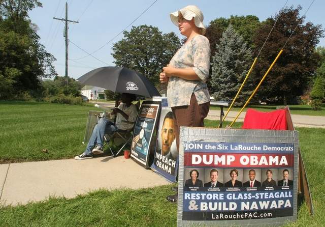 It is not the first time volunteers were from the LaRouche Political Action Committee have made a splash in Livingston County. In June, Fowlerville police asked Redford resident Nick Walsh to take down signs carrying the message “Dump Obama” during the funeral procession for former Fowlerville firefighter Alan Hale. Walsh said he was not targeting the funeral.