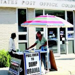 The other weekend a local Jewish fellow who happens to have an African-America wife just snapped and began bellowing at the LaRouchies, telling them to take down their damn signs. Â Quite an uproar resulted. Â Eventually someone a half-block away called the police who came in and calmed down the local citizen. Â The LaRouchie’s response? Â They hung up another Obama as Hitler poster. Â It had worked for them, so they were playing to their strength.