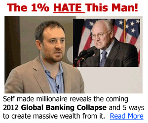 Meanwhile, this guy — standing before an unflattering picture of Dick Cheney — wants you to know that he predicted everything coming. And that the powers that be hate him and want to stop him.