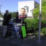 A fringe political group headed by a right wing activist who has openly supported accused Nazi war criminals, among others, held a signature gathering in support of impeaching President Obama in front of the Foster City Post Office earlier this week under a doctored poster of Obama wearing a Hitler mustache.