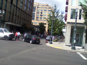 Just to be sure, this blocked off street has a bunch of people — not all too many, but very loud — chanting the desire to abolish the police, disband the ppb. Off to the side, two hardhats (though not with hard hats on) I walk past are mocking the idea. “Who will protect us from these jackasses?”. (I wanted to toss in Charles Barkley’s comment — “Who are black people gonna call? Ghostbusters?” ). Off to another side I overhear “… And if they call me racist, I will just bring out my wife and mixed race son…”