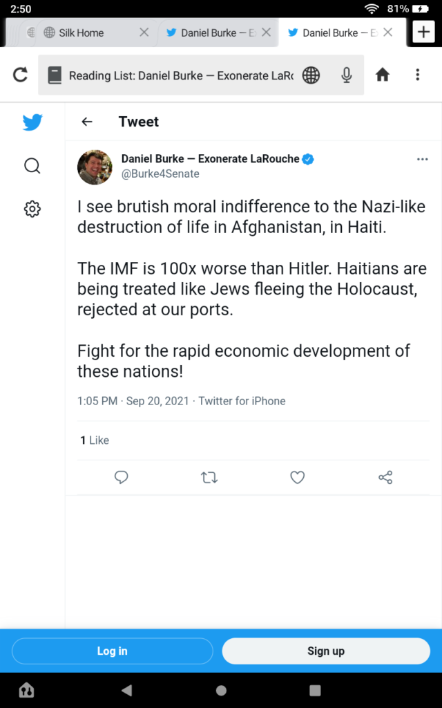 Elsewhere mDzagi answers a Trump Supporters question on what he would say to Biden with a bit of nonsense, as from a Larouche perspective there is nothing to ask the man given that he is a hologram.