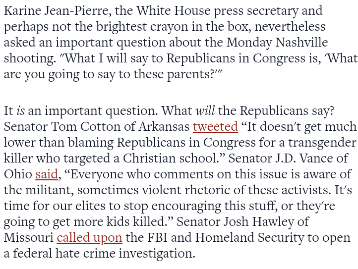 The headline for the Nation does its best to de-personalize the crime — Manhattan Court Pursues Florida Man for White-Collar Crime, subline of Donald Trump’s indictment is less a matter of politics than of ruling-class impunity. But his worst crimes won’t be prosecuted in court. Better, and oddly you can couple it with National Review’s sentiment on relative meaning of this in itself.