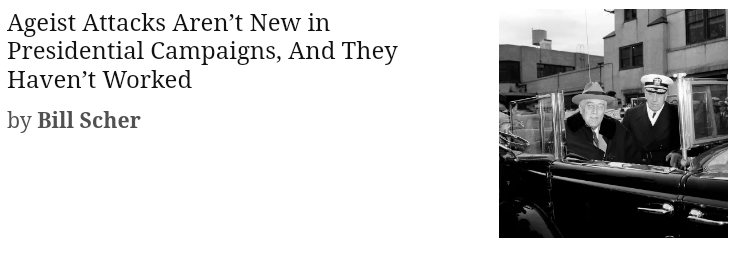 I am seventy percent sure that Biden was the only person beating Trump in 2020, and he at least has good reason to believe it himself. Sitting around this header are revisionisms all around — like, I see a headline “Clinton in 1992 campaigned like a Progressive. Then forces changed him in office” — a drastic revision of the text, and I can point to any number of ads pointing to Clinton / Gore as “A New Kind of Democrat” who were going to have more police on the beat and take down crime and drugs with lots of new prison construction that would really boost our economy. It is liable that the basics of Biden v Trump could get lost in the shuffling of murmuring on changed demographics and generational voting habits and the 70 percent case that Biden was it as you state at 2024. I do not know if this Washington Monthly article takes on Reagan in 1984. It does clearly go to Roosevelt in 1944 — which brings to mind a story I read in someone’s memoir — I have to look it up — where judging a guant Roosevelt waving out of a limo, and having a sinking feeling, someone says to him, ” Take a good look-see over at Harry Truman. He is very going to be out next president.” From that point of view of the historical record, I don’t understand why Bill Scher wants to give us the parallels of Roosevelt 44 to buttress Biden 24. For his part Roosevelt had said privately if the European theatre was won, he would probably lose this election — along the lines of what would happen with Churchill against Atlee. Another wearisome score for Schrer’s at least by his headline premise.