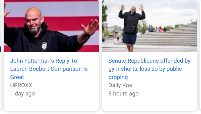 Funny here, I see the battle lines drawn in the headlines and image highlights. So, note the Democratic side highlights the commentary of Lauren Boebert and focus on on Fetterman “burn and complete destruction” comments.
